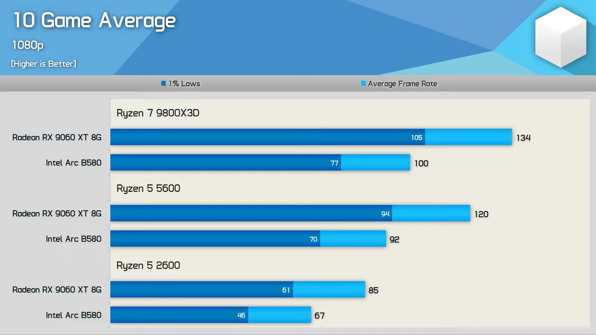 В ряде других проектов при использовании старых процессоров, например Ryzen 5 2600, видеокарты Arc все еще могут уступать конкурентам вроде Radeon RX 9060 XT. Однако для владельцев относительно современных систем, например, с процессорами уровня Ryzen 5 5600 и выше, улучшения делают Arc B580 значительно более привлекательным выбором.