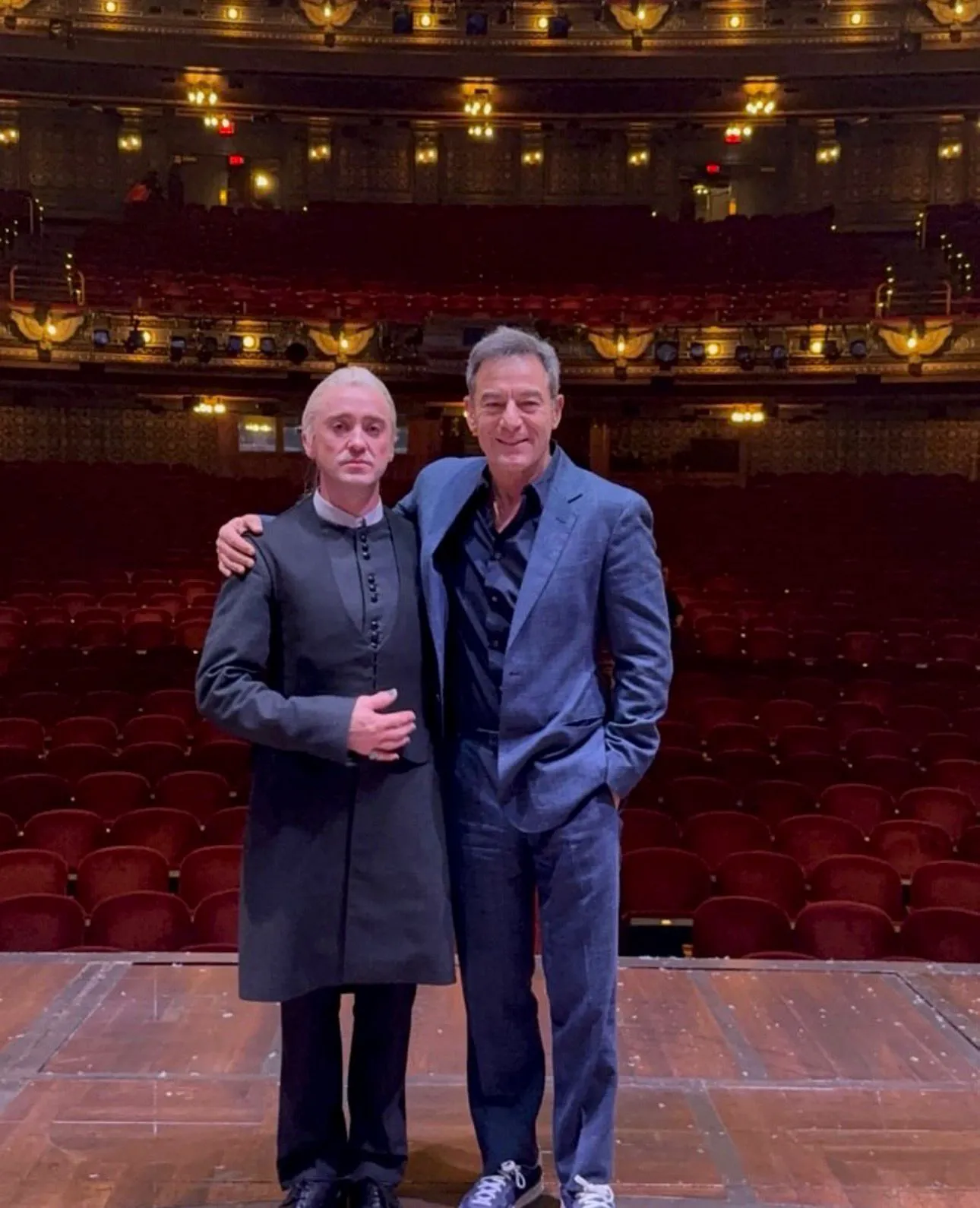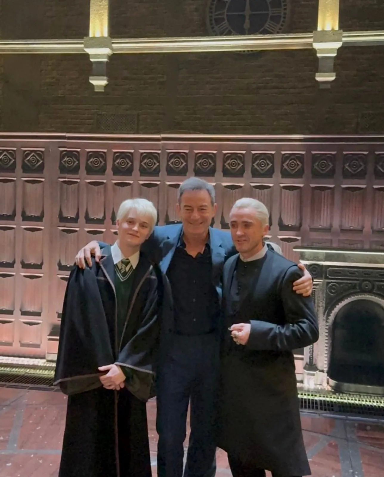 Джейсон Айзекс сыгравший Люциуса Малфоя в фильмах о Гарри Поттере, посетил спектакль «Гарри Поттер и проклятое дитя», где его экранный сын Том Фелтон впервые играет на Бродвее роль повзрослевшего Драко Малфоя.