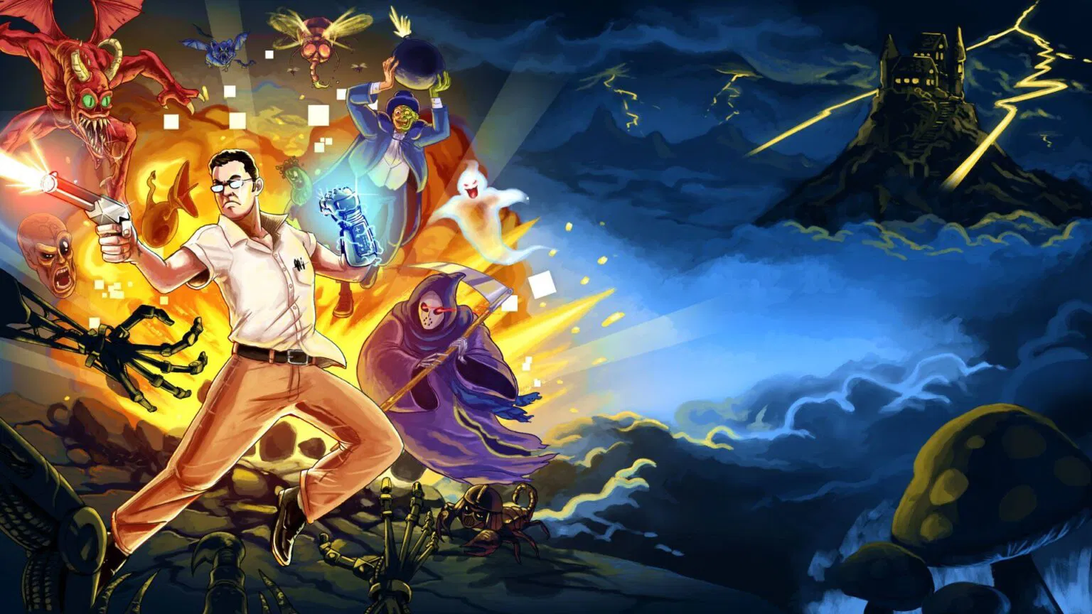 Каждая зона отражает атмосферу оригинала: есть уровень ужасов, разворачивающийся в заброшенной деревне, этап среди облаков с подвешенными платформами и уровень, населённый роботами в духе Терминатора. После победы над всеми врагами открывается финальный этап — структура кампании очевидно вдохновлена классикой жанра.