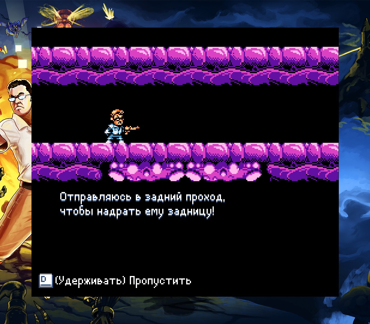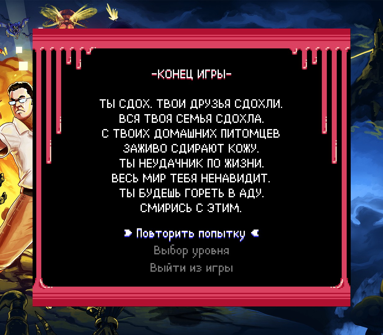 Проект наполнен узнаваемыми элементами — от дизайна уровней и сражений в духе классических платформеров до фирменного стиля ЗлогоЗадрота, где каждая фраза сопровождается сарказмом и матерными комментариями.
