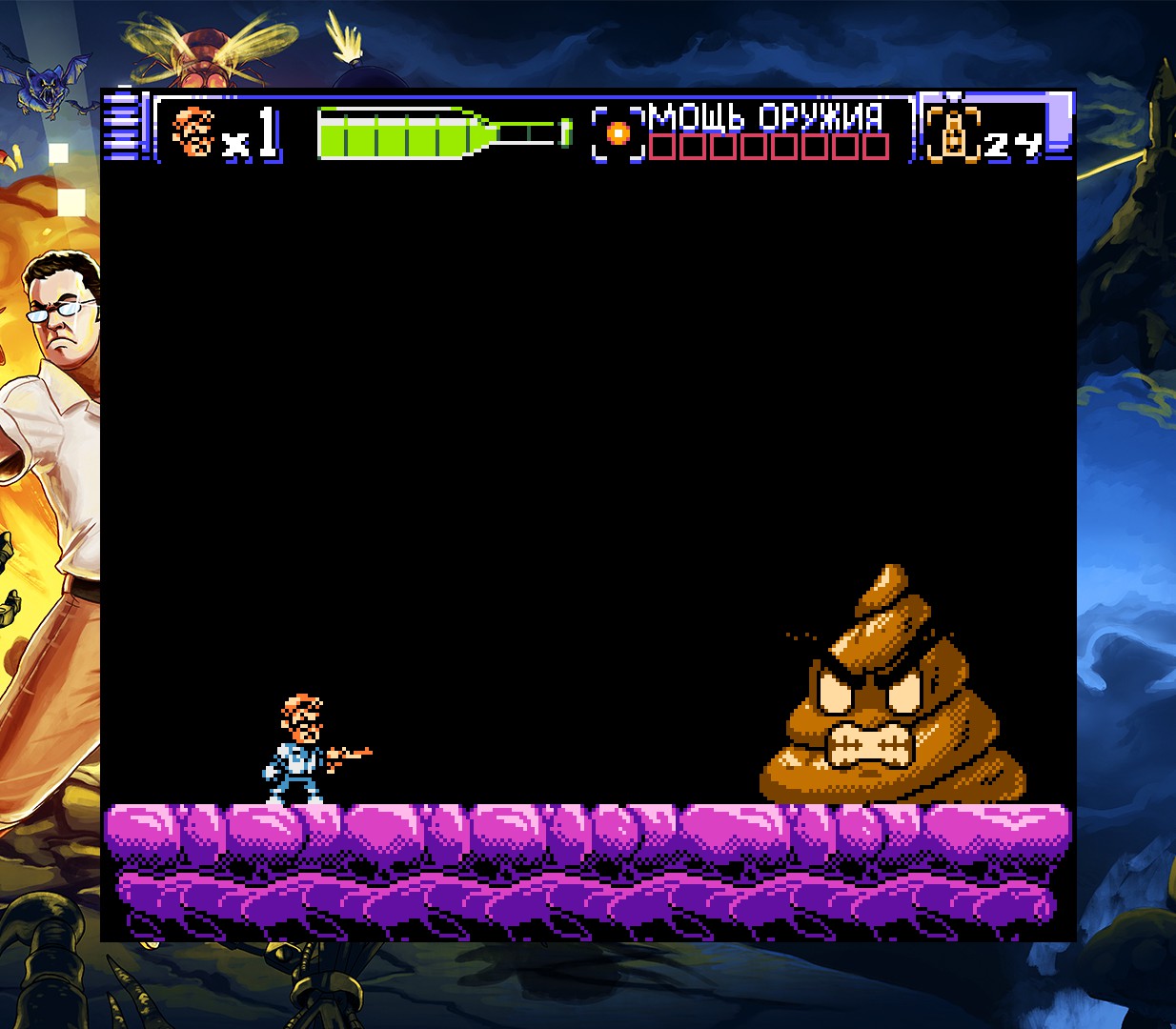 Именно эти черты лежат в основе Angry Video Game Nerd 8-Bit — игры, которая пародирует и одновременно отдает дань уважения классическим 8-битных проектам. Здесь встречаются всё те же капризы старых игр: враги с нелогичными паттернами атак, прыжки «вслепую» и ситуации, где тебе прилетает удар ещё до того, как успеваешь среагировать. Это намеренная отсылка к легендарным тайтлам вроде Mega Man, Castlevania и Contra, которые, несмотря на свой культовый статус, тоже страдали от схожих недостатков.