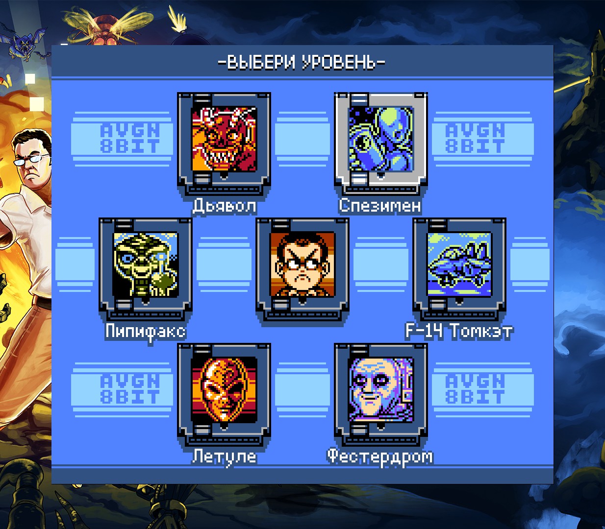 Angry Video Game Nerd 8-bit — это клон классических 8-битных платформеров, который особенно интересен для тех, кто знаком с мифологией и видео Задрота. Игру можно оценить по достоинству лишь при понимании многочисленных отсылок к оригинальному контенту.