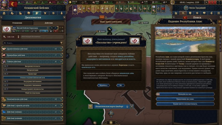 На все это можно влиять не только и не столько улучшением показателей своего государства. Заключать выгодные браки? Конечно! Развивать шпионские сети? Без них никуда! А может, вообще создать международную организацию? Отличный ход! Вдумчивый и аккуратный подход может позволить добиться многого, а наличие мощных союзников и компромата обезопасит ваши границы.
