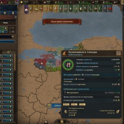 Развитие самих районов чем-то напомнило Civilization: тип производимых ресурсов зависит от местности, а объемы производства — не только от численности населения, но и от инфраструктуры. С течением времени “специализация” региона может измениться или расшириться, повинуясь строгому историческому контексту, что потребует от вас немедленной реакции. А еще нужно следить, чтобы уровень образованности населения соответствовал уровню технологического развития и его влиянию на добычу того или иного ресурса.