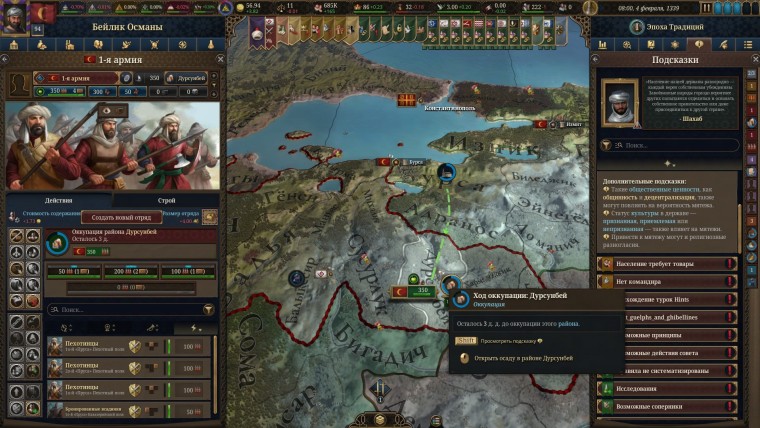 Но что мы все о вашей стране? Давайте теперь о соседях. Ведь какая может быть игра на глобальной карте. без возможности занять как можно большую и богатую территорию любыми доступными в игре способами. Обычно я отыгрываю весьма агрессивно, и для таких как я, Europa Universalis 5 превращается из симулятора генерала в симулятора круглосуточного диспетчера логистической компании.