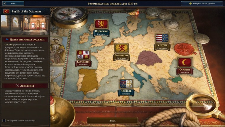 Начнем с исторического периода. Игрокам предстоит вершить судьбу выбранного государства на протяжении крайне насыщенного исторического периода: с 1337 по 1837 годы. Фактически от начала Столетней войны до появления телеграфа. Вы выступаете не в роли какого-то конкретного лидера, а абстрактной верховной власти, форма которой может меняться в зависимости от выбранного политического курса.