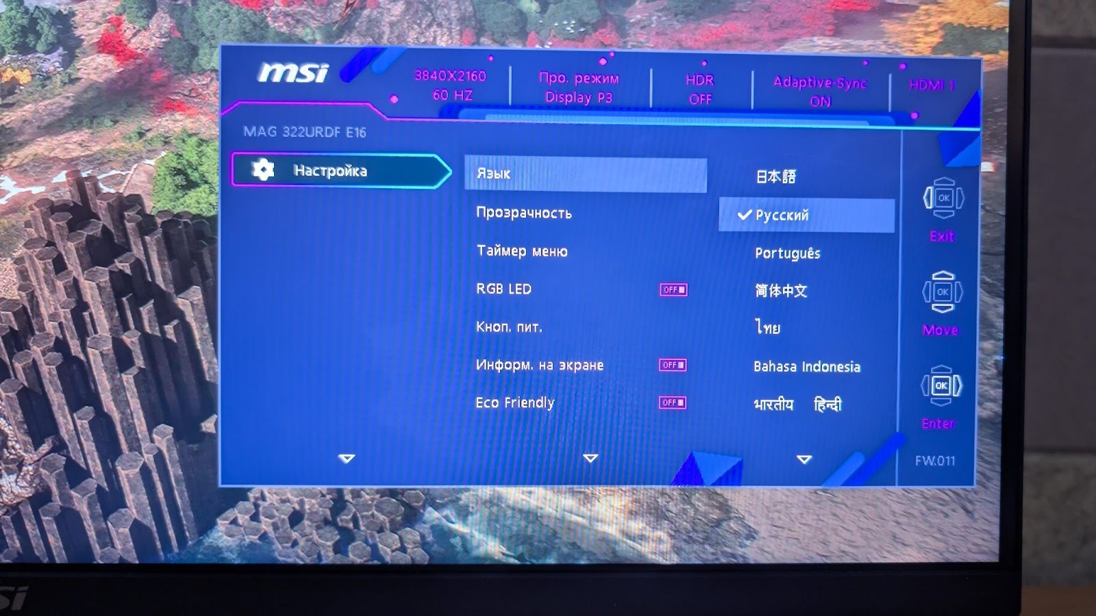 К качеству изображения в целом претензий нет. Цветопередача отличная уже “из коробки”: почти полный охват DCI-P3, сильно расширенный sRGB и поддержка 10-битного цвета (8-bit + FRC) позволяют использовать монитор не только для игр, но и для работы с фото или видео. Сертификация VESA DisplayHDR 400, конечно, не превращает его в эталонный HDR-экран, но базовый прирост контраста и яркости в поддерживаемом контенте всё же заметен.