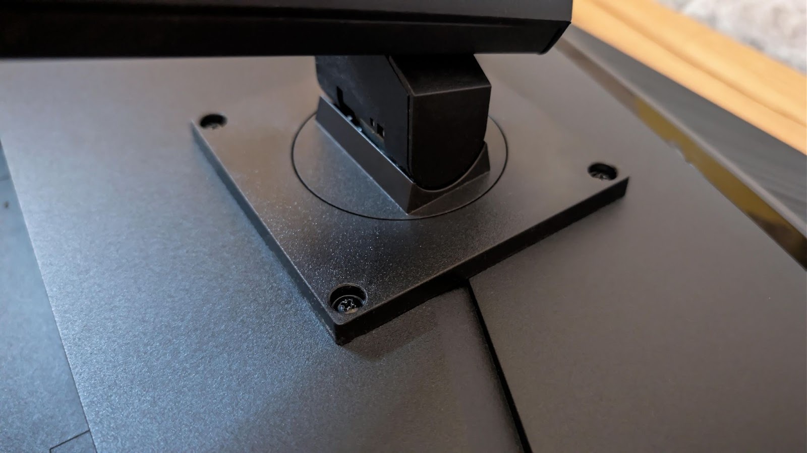 Начать стоит с подставки — она довольно компактная для монитора с диагональю 31,5 дюйма и состоит из двух частей. Конструкция максимально простая и надёжная: никаких защелок, крепление осуществляется четырьмя болтами. Сборка не вызывает вопросов, а сам подход выглядит честным и практичным. При желании заменить подставку на кронштейн никаких проблем тоже не возникнет — монитор не привязан к какому-то экзотическому креплению.