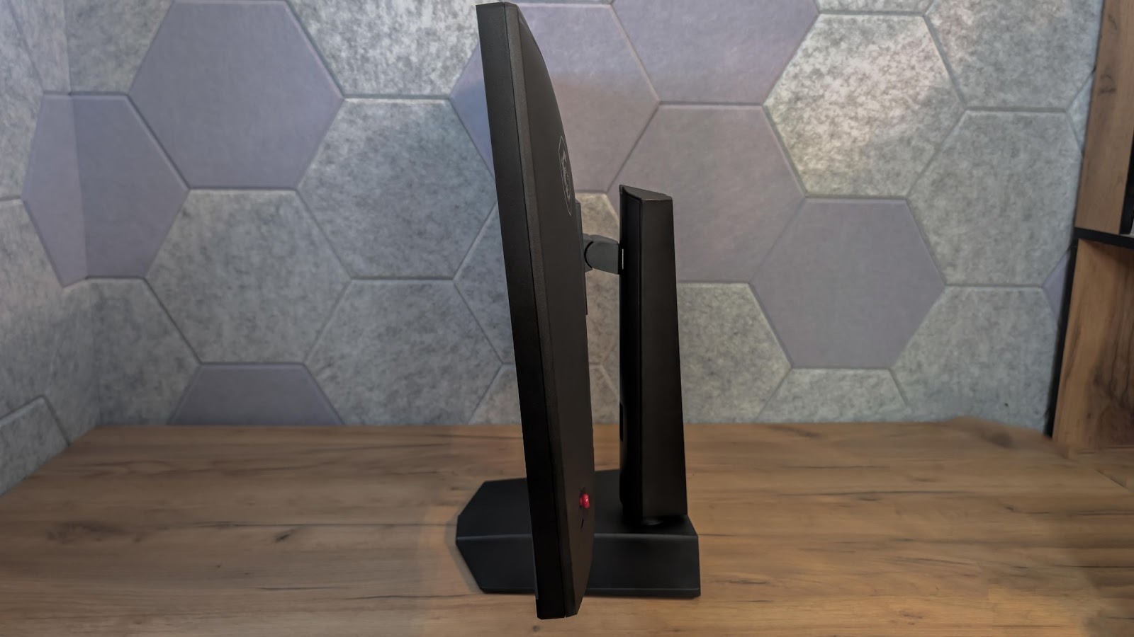 Задняя крышка самого MAG 322URDF E16 оформлена достаточно дерзко. Резкие линии и скрытая внутри ARGB-подсветка сразу выдают геймерский характер, но без ощущения перегруженности. Это не кричащий дизайн, а скорее аккуратный намёк на игровую направленность. Выглядит стильно и уместно, особенно если монитор стоит на виду. И да, если у вас светлая стена, то подсветка вполне заметна и придает немного атмосферности игровому месту.