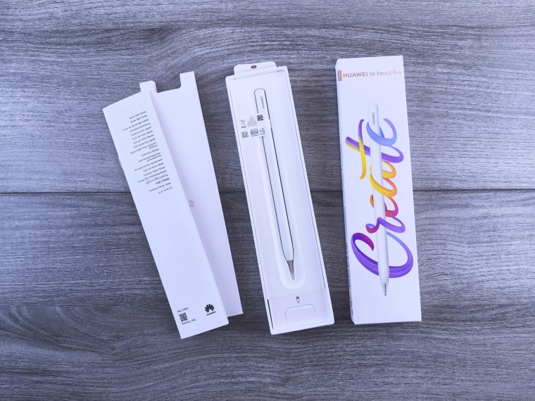Упакован аксессуар в белую прямоугольную коробку. В верхней части — название модели золотистым шрифтом «HUAWEI M-Pencil Pro», посередине — изображен сам стилус. Его по спирали огибает разноцветная надпись «Create» как призыв к творчеству. К стилусу мы ещё вернёмся, а пока поговорим про внешний вид устройства и удобство использования.