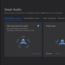 Для начала именно тут можно управлять достаточно неплохой аудиосистемой ноутбука. Шесть встроенных динамиков звучат не слишком громко, но дают очень насыщенный звук с неплохими низкими частотами. Пространственное звучание тоже достойное, несмотря на компактные габариты.