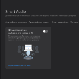 Микрофонов у ноутбука три, качество передачи голоса отличное. С применением встроенных функций шумоподавления на MagicBook Art 14 вполне можно начать делать первые шаги в записи своего голоса или каких-то простых подкастов.