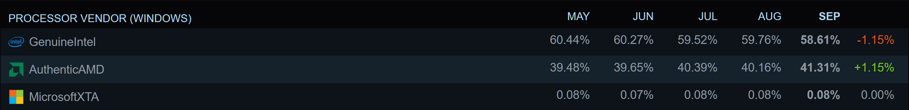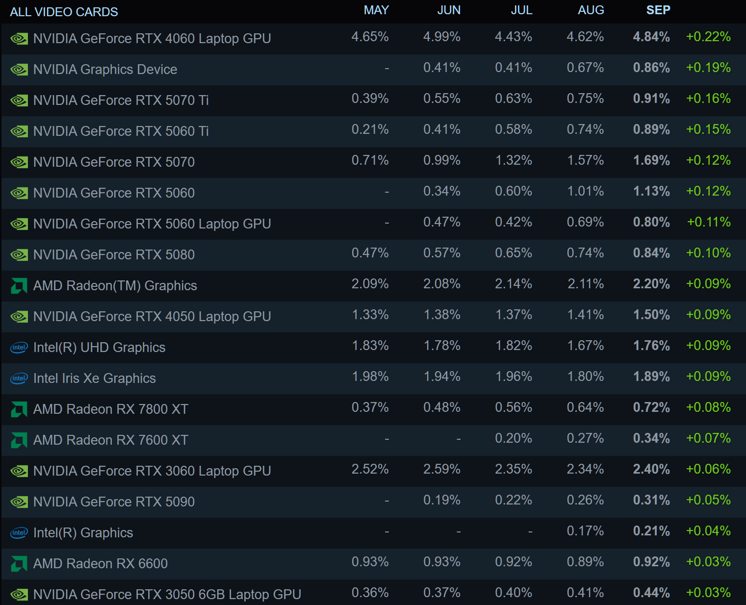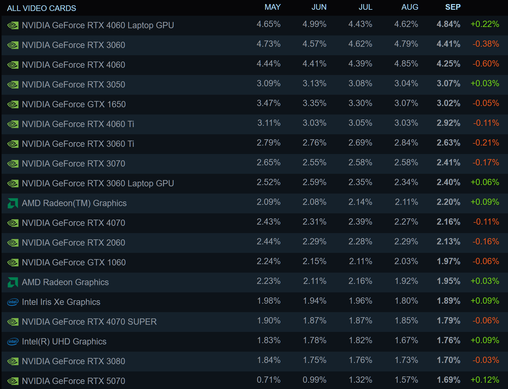 Опрос оборудования Steam: AMD увеличила долю процессоров, RTX 4060 Laptop - самая популярная видеокарта