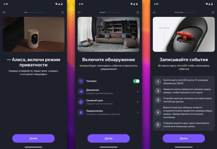 Все настройки происходят через приложение “Умный дом” от Яндекса, а дальнейшее управление можно осуществлять голосовыми командами или через центр умного дома, если у вас таковой имеется. Камера встраивается в любые сценарии и хорошо дружит с другой “умной” техникой.