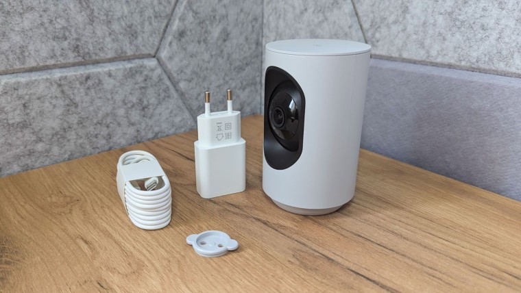 В комплекте нет излишеств, все строго необходимое. Камера, крепление на стену или потолок, длинный USB-C кабель и блок питания. Установка, подключение и настройка едва ли занимает 10 минут. Можно просто поставить на полку или даже закрепить вверх ногами на потолке — в приложении Яндекса есть настройка, которая переворачивает картинку.