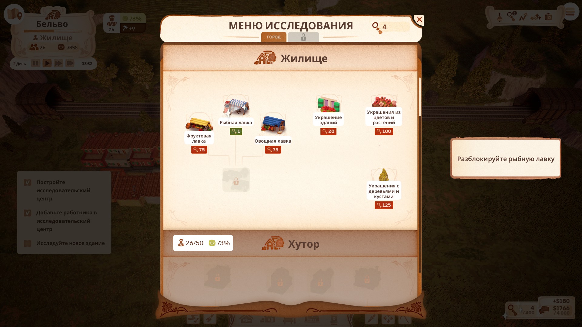Развитие построек происходит постепенно и весьма увлекательно. Новые улучшения открываются за исследовательские очки, получаемые при вложении в научный центр. Это позволяет превратить обычные дома в богатые особняки, требующие соседства с объектами роскоши для поддержания довольства жителей. Можно также увеличивать этажность зданий, размещая несколько семей под одной крышей. Однако чрезмерная плотность застройки снижает уровень счастья горожан, что добавляет игре стратегической глубины.
