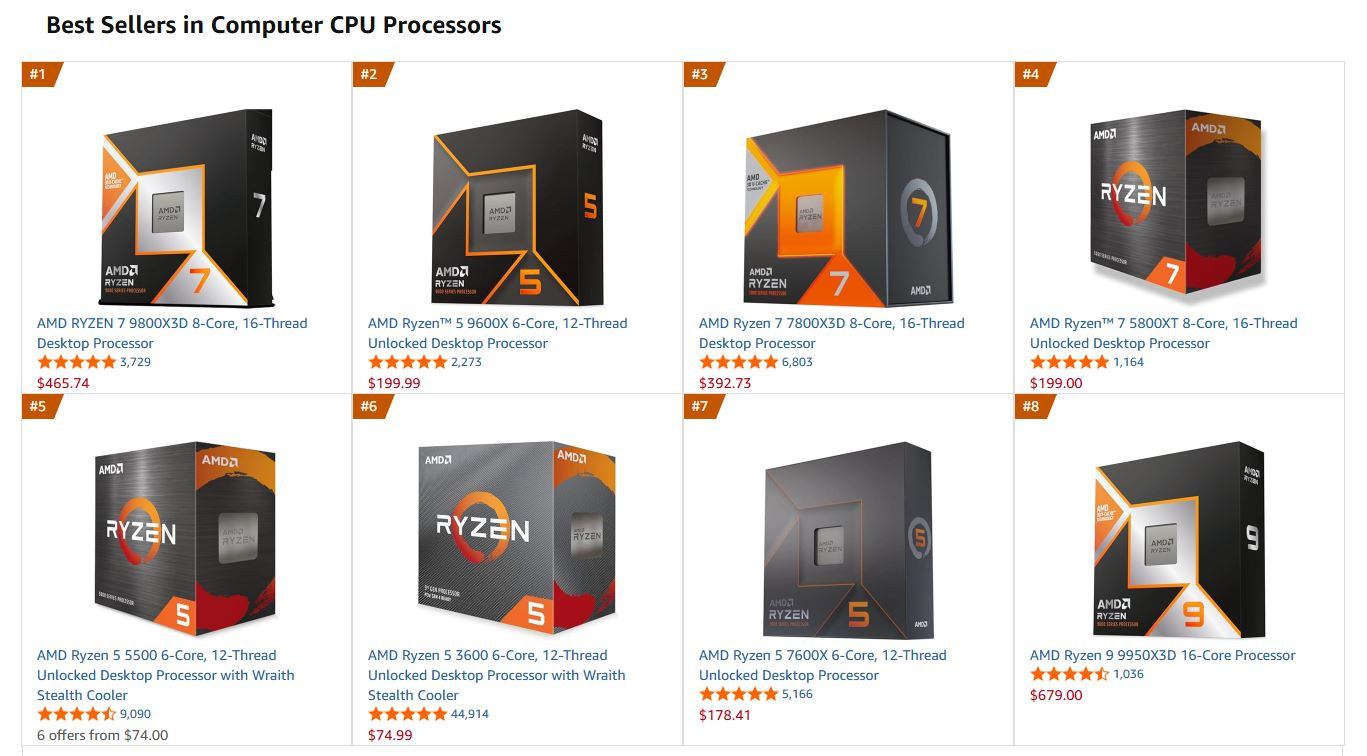 Продажи процессоров AM4 резко выросли; Ryzen 5 3600 также вернулся в топ-10