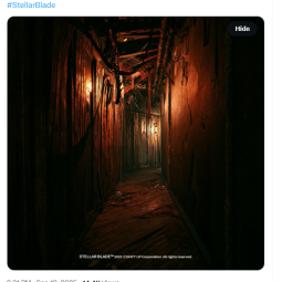 Официальный аккаунт игры Stellar Blade в социальной сети X опубликовал интригующий пост, который вызвал бурное обсуждение среди фанатов. Твит содержит изображение темного, мрачного коридора с тусклым освещением, испещренного тенями и загадочными деталями. В подписи к изображению указано: «Через неделю…», что наводит на мысль о скором анонсе или релизе нового контента.