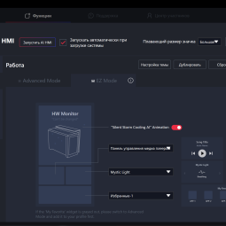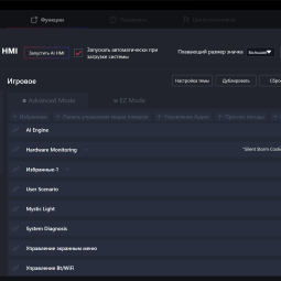 В зависимости от выбранного сценария на экране будет выводиться мониторинг загрузки комплектующих, параметры системы охлаждения, часто используемые программы или возможность быстрого переключения сценариев работы. Все это можно самостоятельно настроить в MSI-center. Там же можно изменить и визуальное оформление, в том числе и поставив на фон свое изображение или видео.