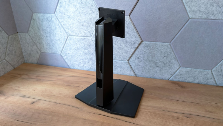Вертикальная стойка достаточно широка, с отверстием для кабель-менеджмента. Дизайн немного агрессивный, но без перегибов и ярких вставок (только одна аккуратная глянцевая полоска имеется).