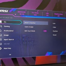 У монитора есть два режима работы (не считая специального для консолей): 4К-160Гц и FHD-320Гц. Таким образом, у вас в одном устройстве и монитор с большим разрешением, чтобы оценить красоты современных ААА-тайтлов, и быстрый — для динамичных сетевых шутеров. И да, MAG 322 URDF E16 сам может включить свое “ускорение”, если игра запустится в FullHD. Это экономит пару нажатий в меню, но само по себе достаточно круто.