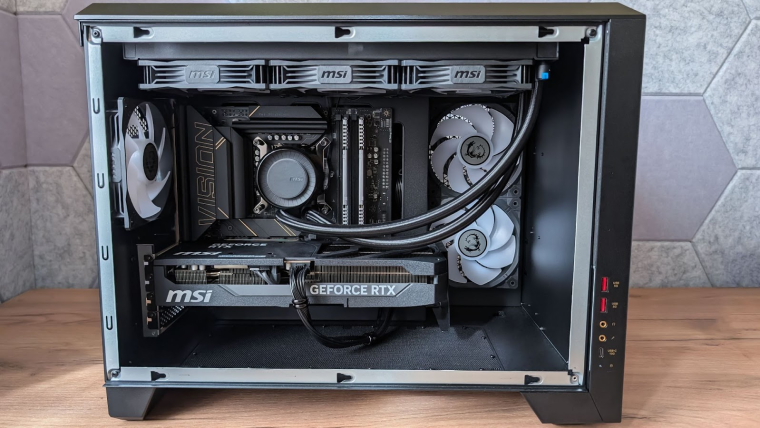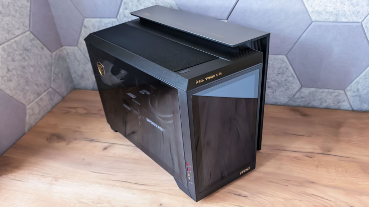 Ответ на второй вопрос дадим чуть позже, а пока поговорим о самом компьютере. MEG Vision X AI относится к линейке премиальных устройств, собираемых в необычных корпусах, под которые проектируются уникальные материнские платы. Это нельзя назвать просто “готовой сборкой”. Это именно что специально разработанный MSI компьютер, собранный с целью удовлетворить самых требовательных пользователей.