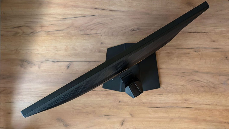 Лицевая панель очень строгая — даже индикатор питания так просто не разглядеть (он справа внизу). Рамки очень тонкие и почти сливаются с Rapid-IPS дисплеем диагональю 31,5 дюйма с соотношением сторон 16:9. К качеству выбранной панели и антибликового покрытия вопросов нет: при почти матовой поверхности экран минимально засвечивается под последними яркими лучами осеннего солнца.