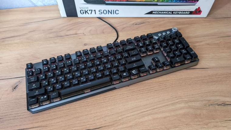 За счет тяжелого металлического корпуса клавиши не издают дополнительного шума, да и тактильно GK71 Sonic ощущается весьма приятно. Клавиши чувствительные и срабатывают примерно на половине своего хода, что понравится любителям динамичных игр.