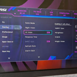 Еще из интересных особенностей можно отметить “AI Vision”, который делает темные участки изображения светлее, что может дать преимущество в некоторых играх, в которых разработчики поленились нормально настроить освещение. Ну и возможность выбрать диагональ экрана! Да это не шутка. Если вам неудобно играть на 31,5 дюймовом дисплее, просто уменьшите отображаемую область до 27 или 24,5 дюймов. Возможно, вам так просто удобнее и привычнее в каких-то играх. И MSI MAG 322 URDF E16 не ограничивает вас ни в скорости, ни в выборе диагонали.